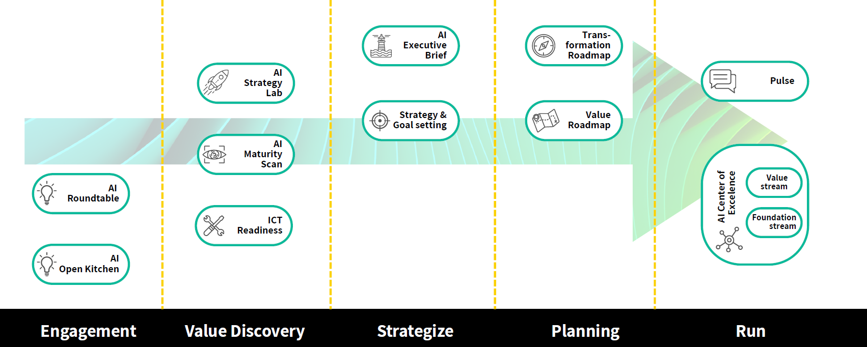 - Eigene AI-Formate und Playbooks, die sowohl strategisch als auch operativ wirken – zum Beispiel AI Value Program, AI Migration Bridge und AI Readiness.